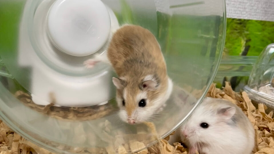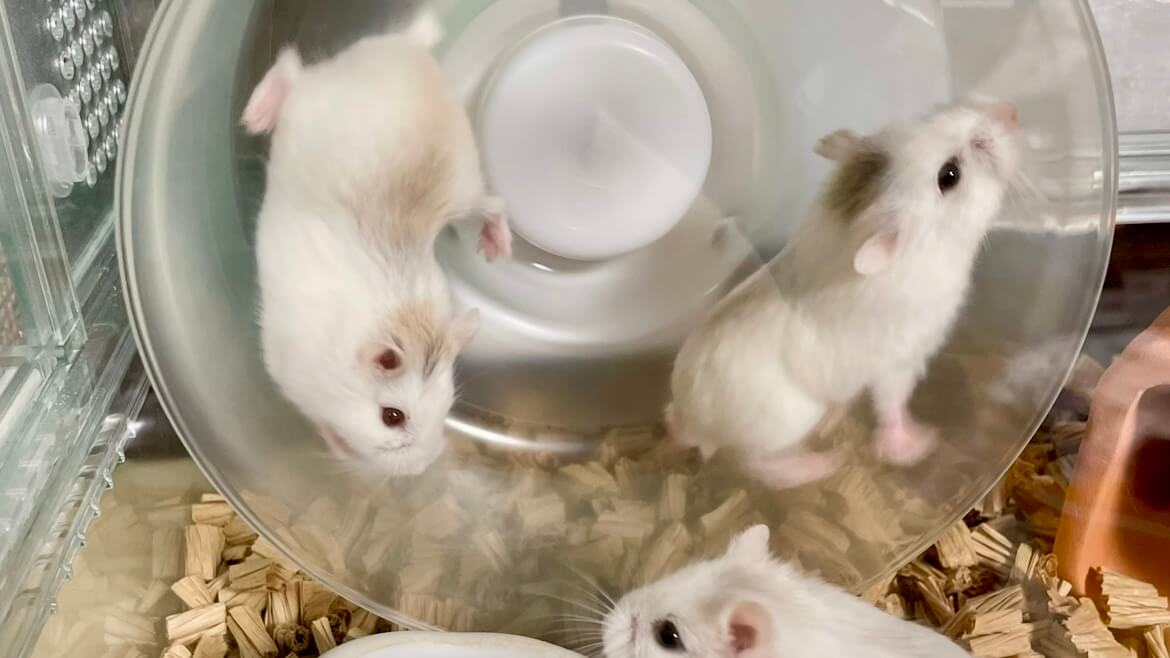 ロボロフスキーハムスターは、回し車が排泄物や毛で汚れることが多いです。